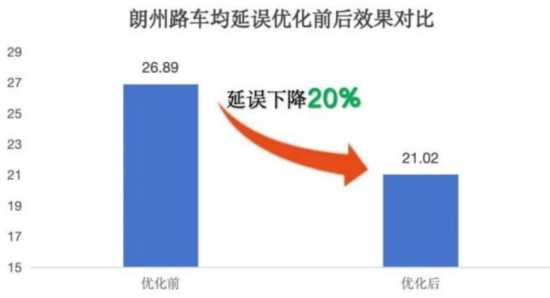 朗州路經過優化車均延誤下降超20%,平均車速提升25%。