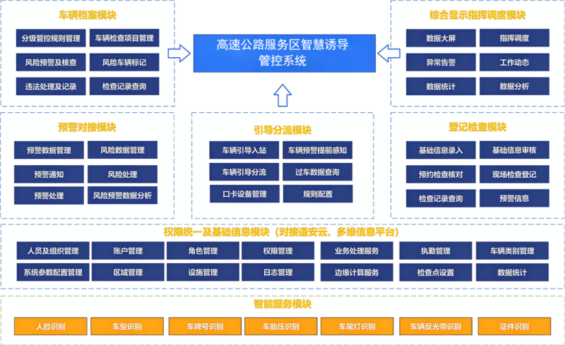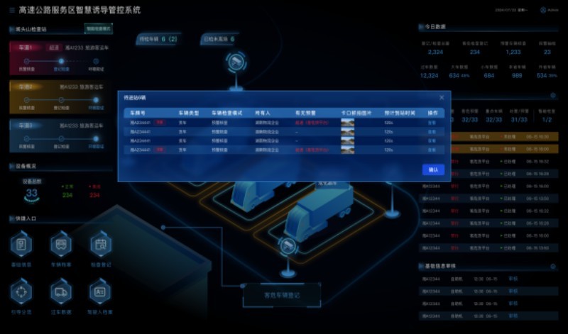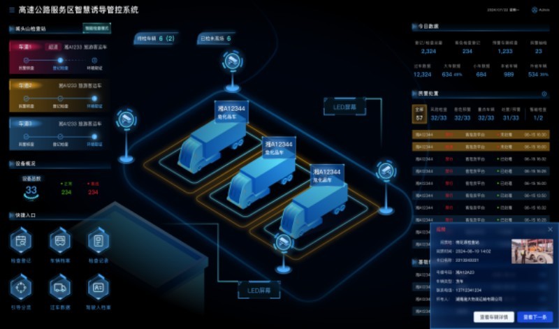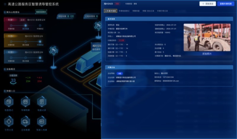 “高速公路服務區智慧誘導管控系統”以分類分級管控理念為核心,借助信息化技術手段對重點車輛進行智慧誘導進站檢查,對客危車輛的檢查登記和預警車輛的核查過程形成標準化、規范化的信息管理,有效提高民警勤務效能;利用智能AI服務、智能設備實現車輛檢查登記過程中材料自動取證、安全隱患智能分析,對車輛檢查登記信息進行大數據綜合分析,對客危車輛安全風險隱患進行預警提示,有效防范安全隱患。通過科技賦能,科學分級管控實現成果增效。