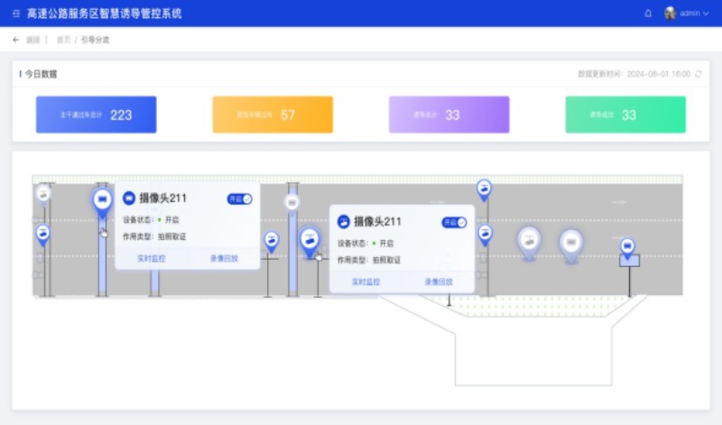 ?車輛精準誘導:車輛進入服務區匝道后,匝道設備對車輛和人員識別,根據車輛分級管控等級規則,對待檢車輛進行分流并同步提醒民警待檢。