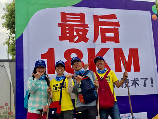 天公作美,原本大雨的周末天氣晴好,二萬余名選手在旗手的引領下,浩浩蕩蕩沿著湘江向湘潭進發。第一天徒步50公里,湘江智慧參賽的員工里,有熱愛運動的年輕人,有40多歲常參加馬拉松的運動健將,有為了挑戰自我參賽的工程師等,大家互相鼓勵扶持著前進,縱然走到腳都起了水泡,也堅持著,絕不放棄。