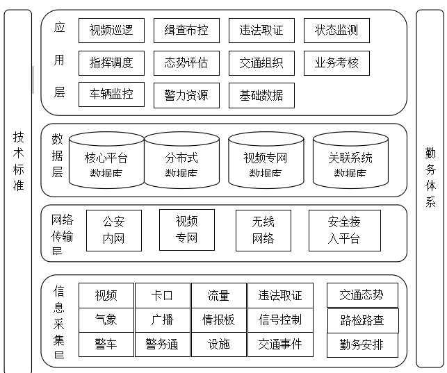公安交通集成指揮平臺是將市縣兩級城市智能交通系統、高速公路和國省道沿線公路卡口及視頻監控系統、交通安全執法檢查服務站等,構筑起縱向貫通、橫向集成、分級應用的全省公安交通指揮體系,實現對道路交通運行狀態實時監控、交通違法行為及時取證和查處、嫌疑車輛的緝查布控和預警攔截、交通態勢的分析研判,并對外提供交通誘導出行服務,從管理和服務兩個層面進一步提升我省道路交通管理水平。